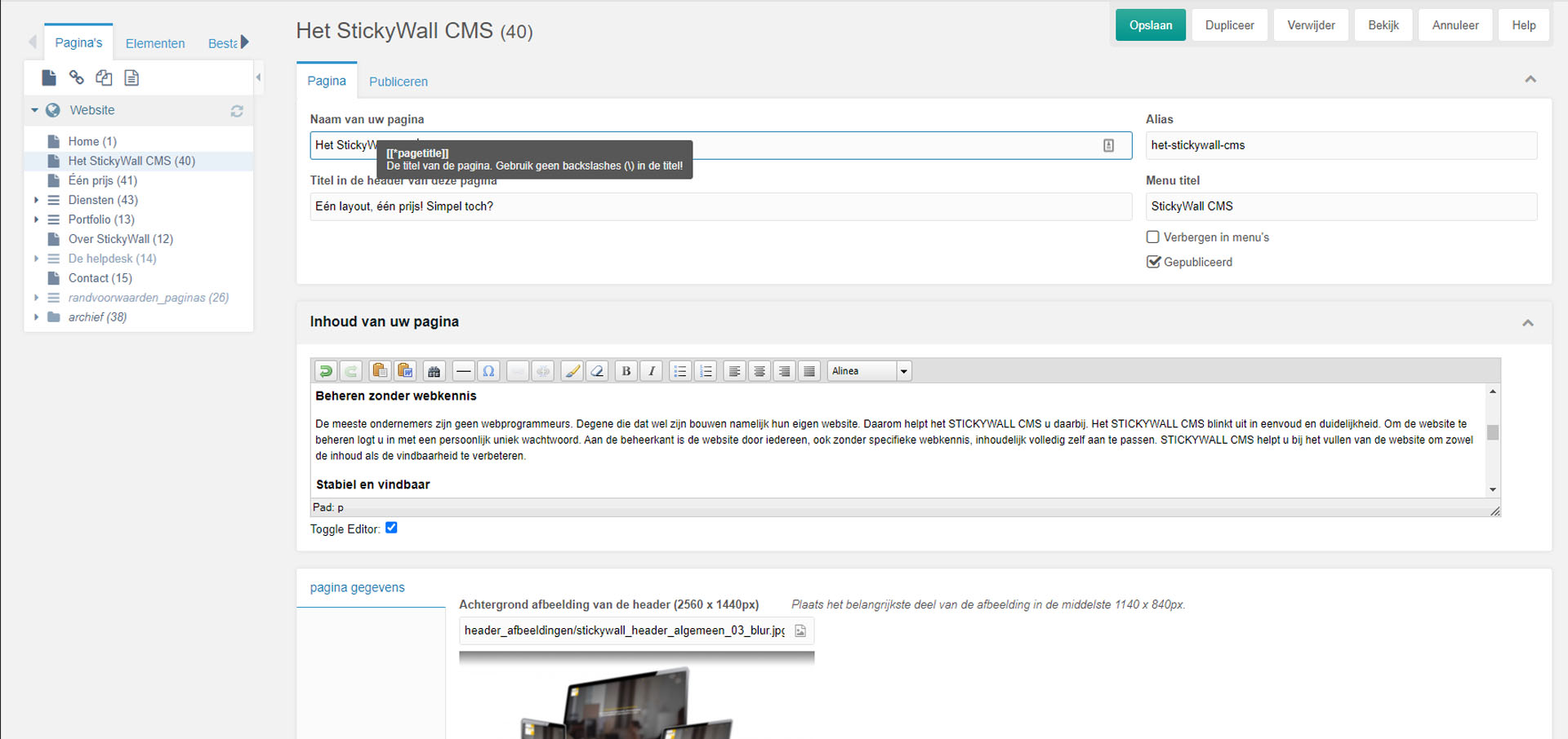 Het STICKYWALL CMS heeft in de basisversie de volgende modules.