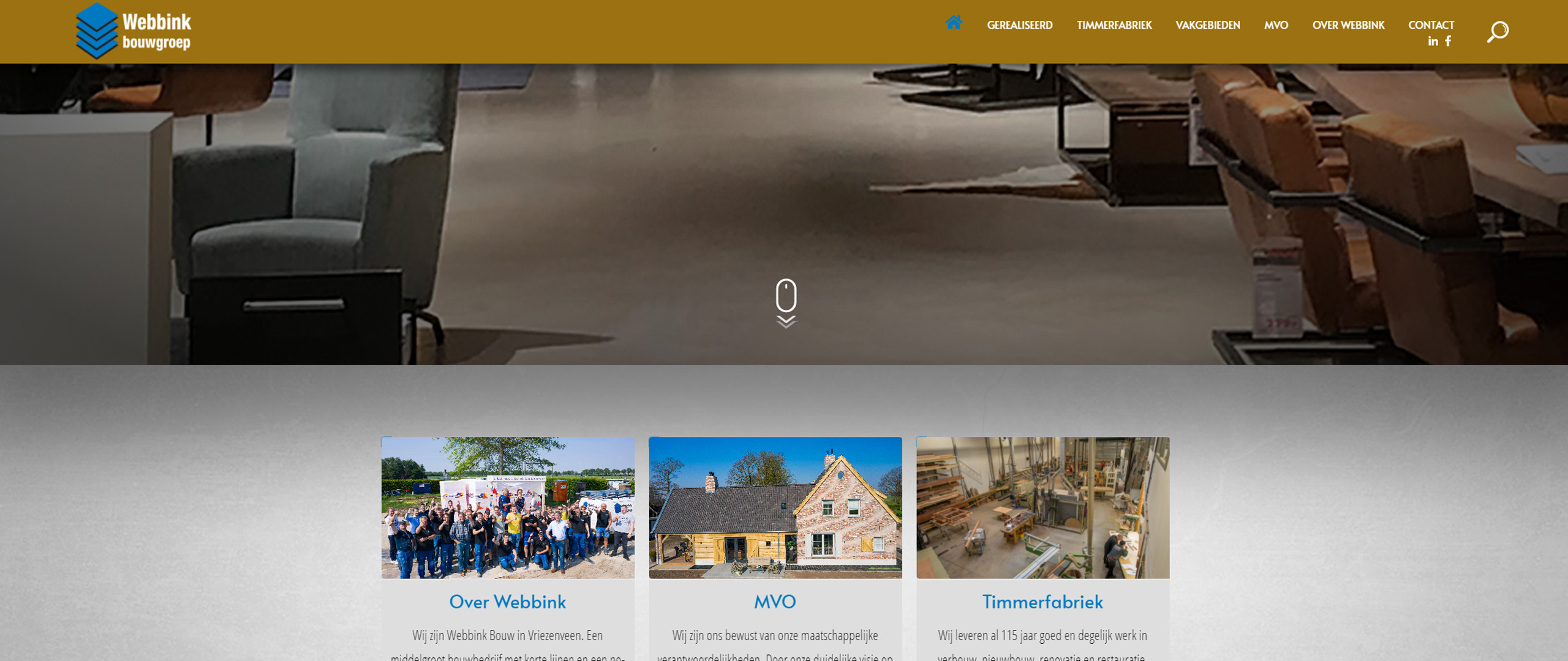 Webbink Bouw is een echt familiebedrijf. De vierde generatie staat al weer aan het roer van dit middelgrote bouwbedrijf. Al enige tijd stond de website van het bedrijf op "under construction" omdat het toenmalige webbureau de website niet meer werkend kreeg. Nadat STICKYWALL CMS was benaderd stond er binnen enkele dagen een tijdelijke website online. Na oplevering van het STICKYWALL CMS gaat het bedrijf zelf voor de invulling zorgen.